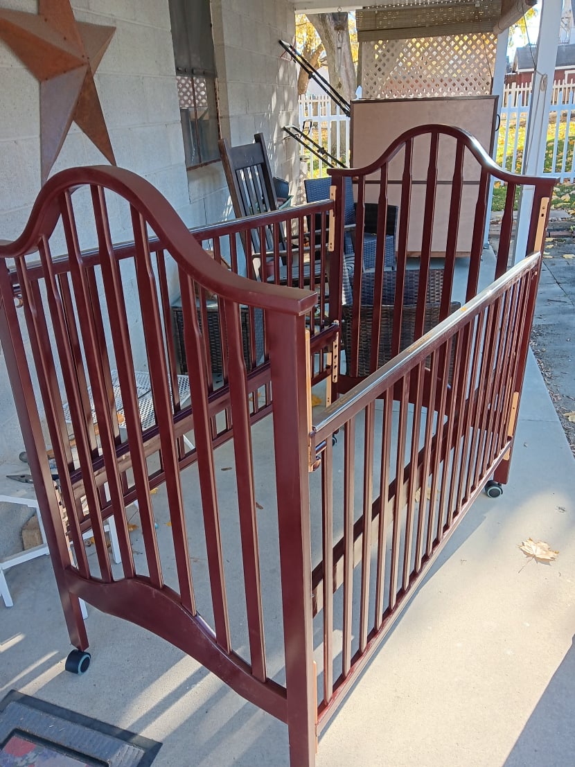 My grandson's baby bed refinished for my great-grandson. Read more..